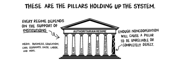 The Trump administration's power and legitimacy comes from both active and passive support from the various pillars. But the pillars can erode that power when they refuse to go along with the administration's authoritarian actions. We need the institutions and people that make up these pillars to engage in mass noncooperation to successfully oppose Trump's regime and quash his authoritarian takeover.